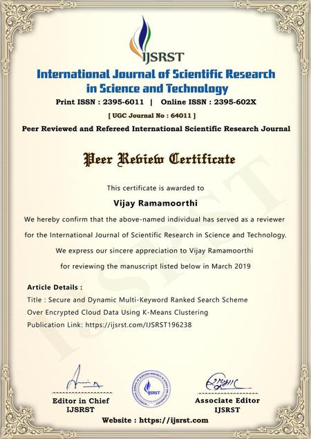 International Journal of Scientific Research in Science and Technology • 12th March 2019 Secure and Dynamic Multi-Keyword Ranked Search Scheme