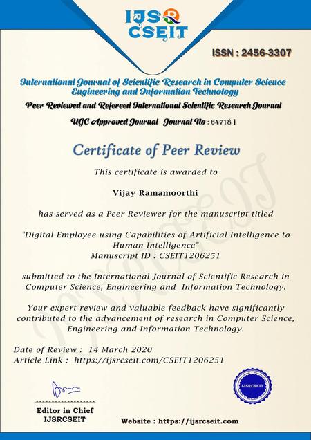 International Journal of Scientific Research in Computer Science, Engineering and Information Technology • 14th March 2020 Digital Employee using Capabilities of Artificial Intelligence to HumanIntelligence