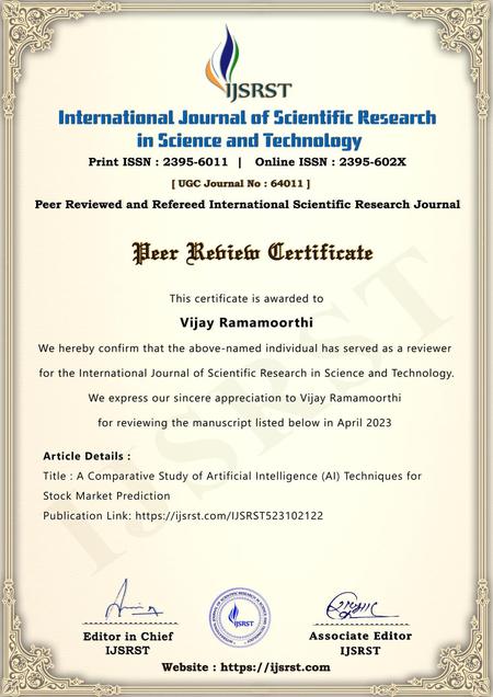 International Journal of Scientific Research in Science and Technology • 6th April 2023 A Comparative Study of Artificial Intelligence (AI) Techniques for Stock Market Prediction