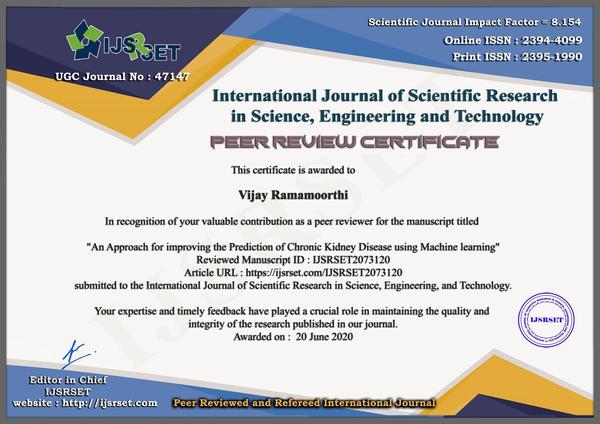 International Journal of Scientific Research in Science, Engineering and Technology • 20th June 2020 An Approach for improving the Prediction of Chronic Kidney Disease using Machine learning
