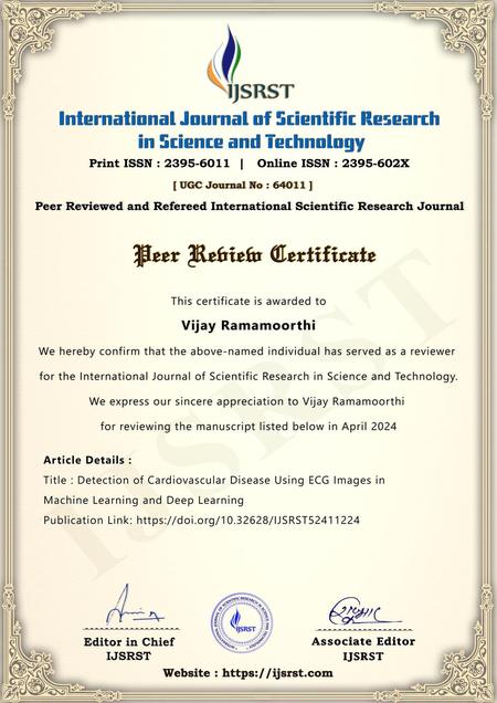 International Journal of Scientific Research in Science and Technology • 24th April 2024 Detection of Cardiovascular Disease Using ECG Images in Machine Learning and Deep Learning International Journal of Scientific Research in Science and Technology